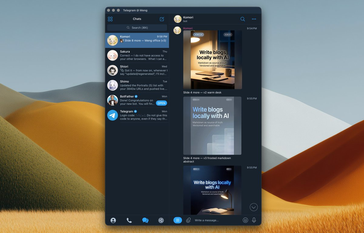 Telegram 成了我的控制中心(以及为什么拆成 4 个 Bot)