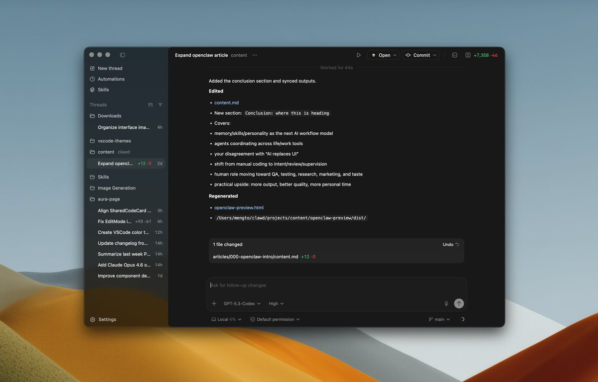 下面我会先讲 OpenClaw 如何改变我的日常工作流,再说 Codex 在其中扮演的角色。