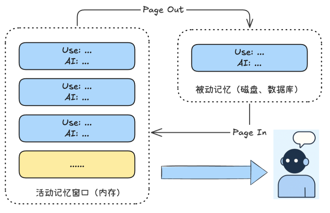 缺点:实现上需要模拟“page in/out”逻辑,并确保触发时机(比如根据关键词或向量相似)的准确性。如果触发机制设计不佳,可能会出现信息召回不及时或漏召的情况,从而影响对话连贯性。同时,“分页”机制要求设计良好的上下文拼接逻辑。