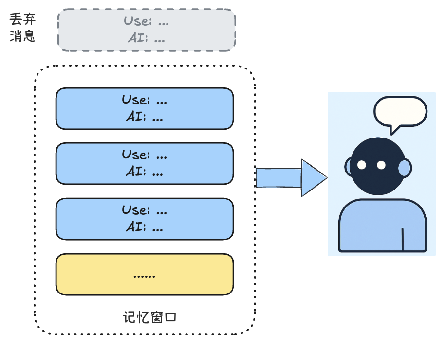这样,无论对话多长,传给模型的上下文始终是最近的N次交互记录 。窗口向前滑动,新进旧出,实现对过往对话的截断。