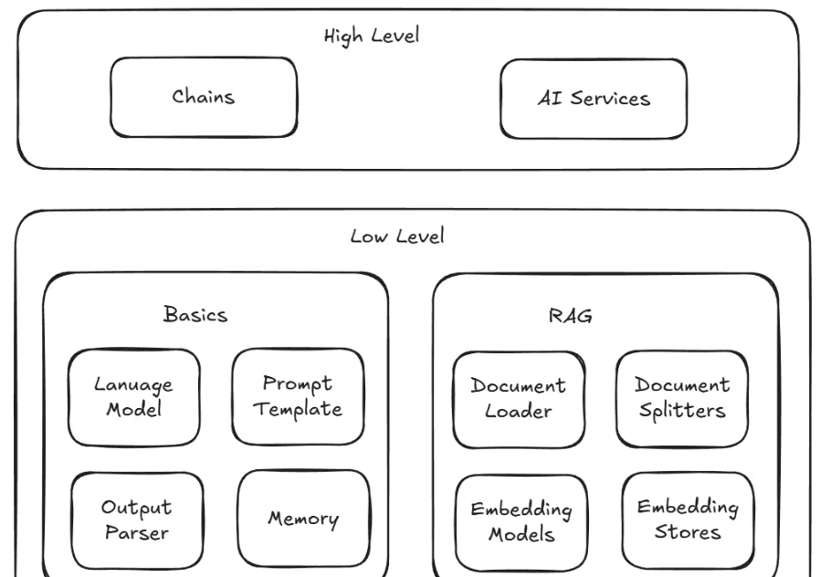 LangChain4J的架构可以分为两层,分别为高层和底层。