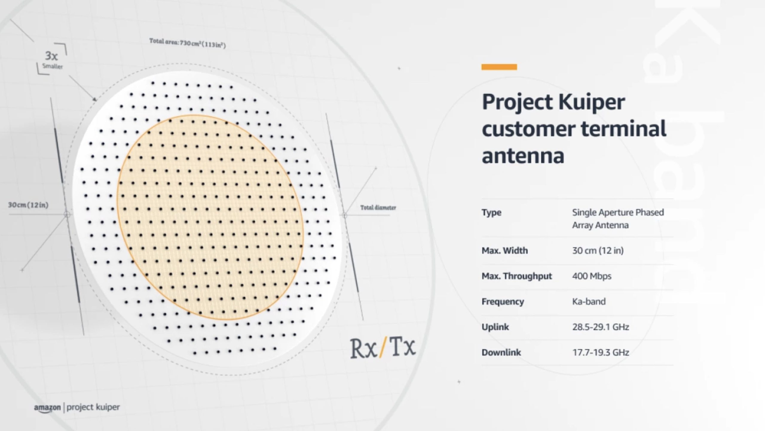 TX/RX 分离: 一部分负责发射(TX,Ku 频段 14GHz),一部分负责接收(RX,Ku 频段 12GHz)。