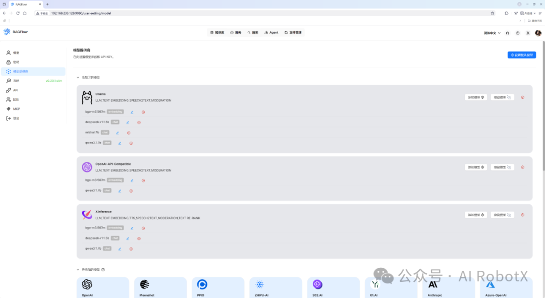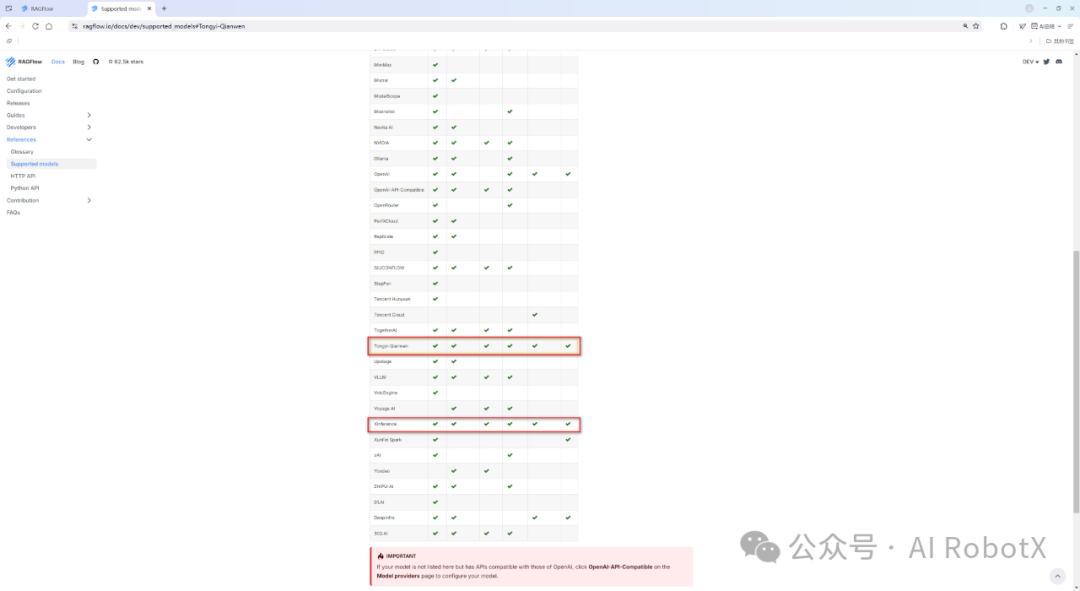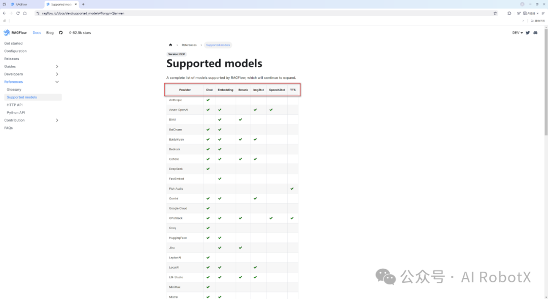 RAGFlow支持的大模型完整清单列表,具体如下图所示: