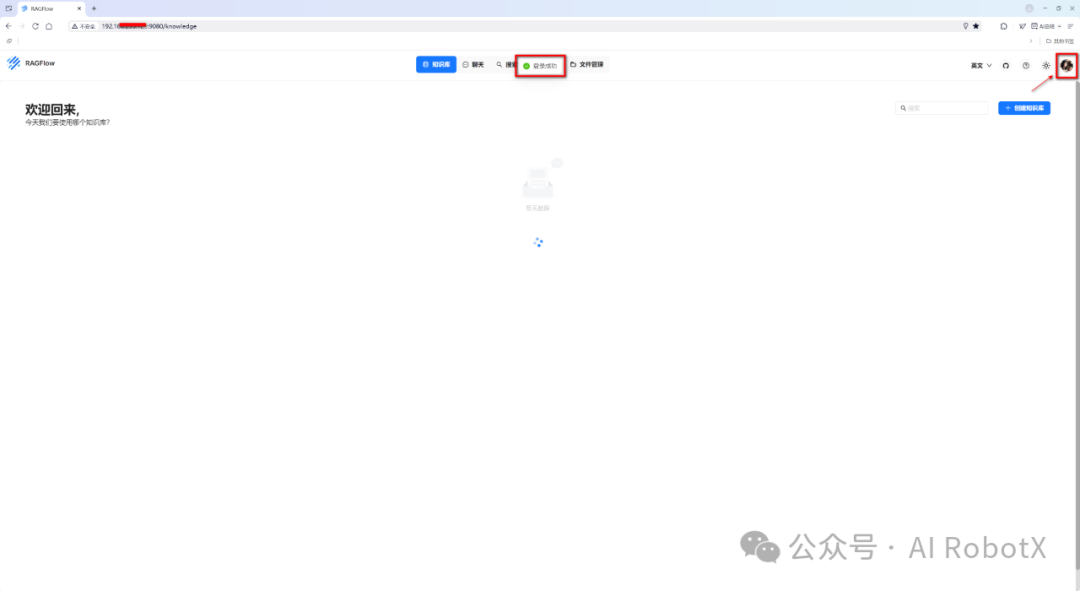此时,当我们成功登录 RAGFlow 后,就会自动跳转到如下界面: