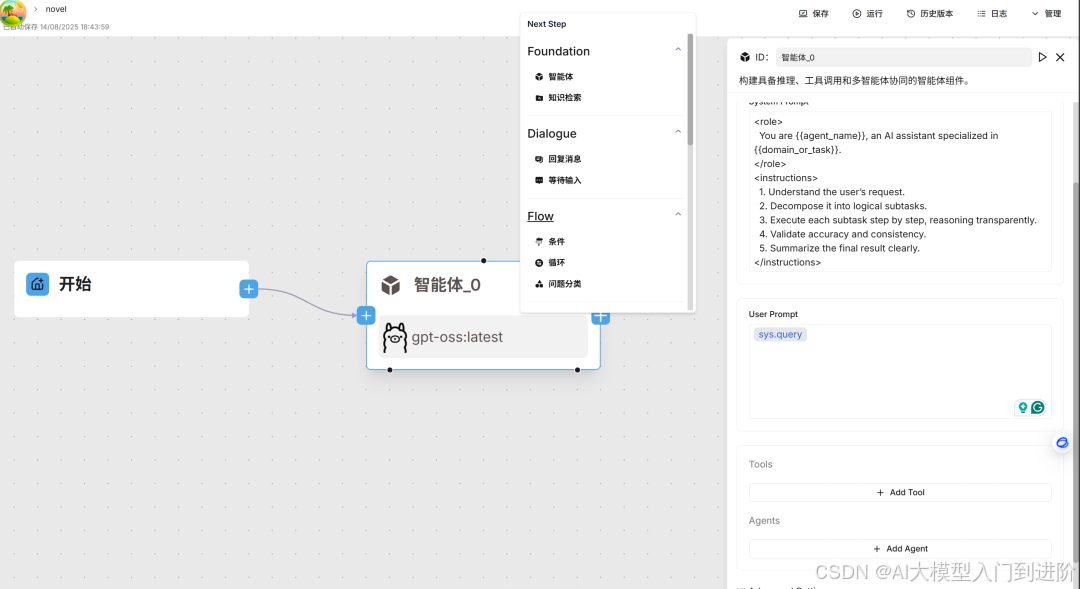 1️⃣ Agentic Workflow:让 AI 学会 “自主思考 + 团队协作”。RAGFlow 0.20.0 实现了完整的Agent 引擎,让系统能够像一个智能助手一样自主地规划和执行任务。简单来说,现在的 RAGFlow 不仅会检索回答,还能根据问题调用工具、分解步骤,甚至让多个智能体协作来完成复杂查询。这种 Agent 能力与 RAG 检索能力融为一体,使系统能够应对更开放、更复杂的场景。