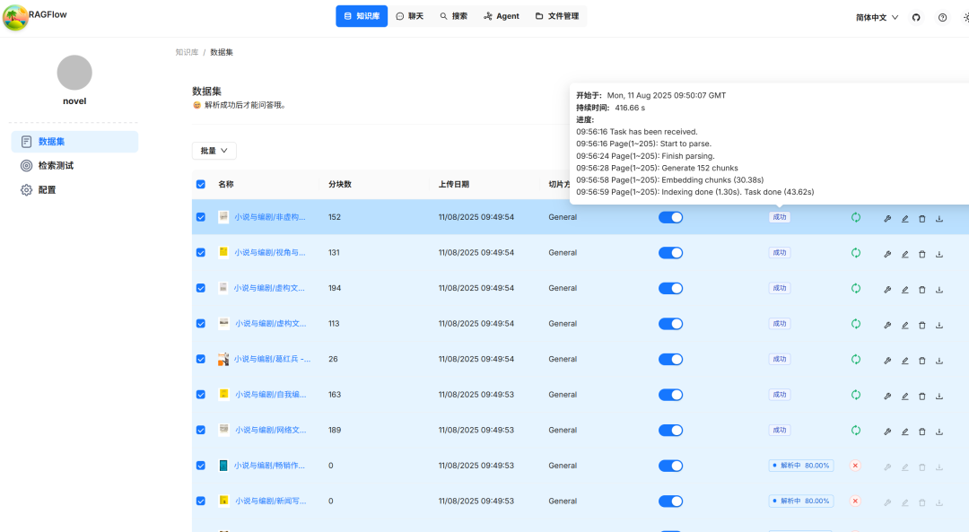 在用柯南嵌入模型处理我的小说知识库时的截图。