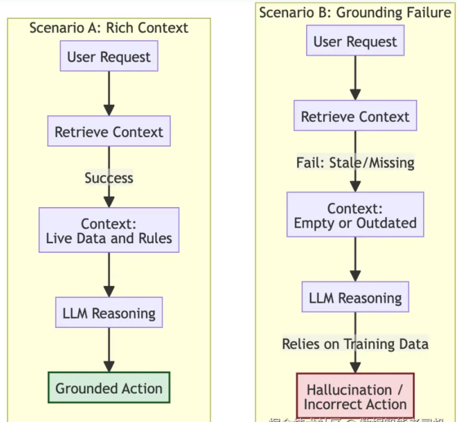 - 上下文对智能至关重要: 智能体的有效性在关键程度上依赖其环境。它必须从丰富的数字化数据存储(如数据库与知识图谱)中汲取上下文,且在需要时也可能依赖物理数据源(如传感器)来做出明智决策。