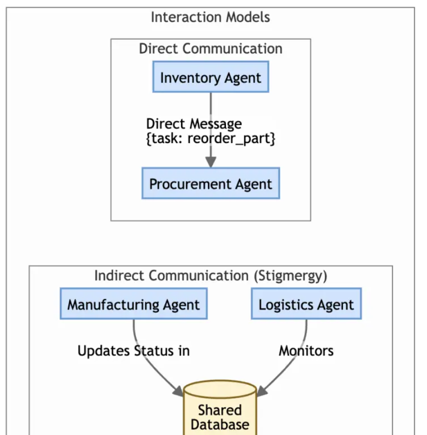 智能体也可以通过观察并修改共享环境(例如数据库)来间接交互。