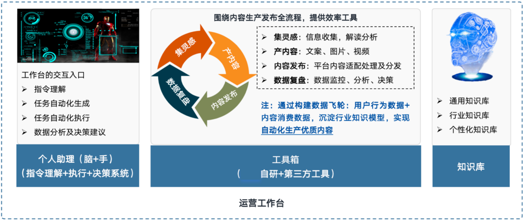 - Output: AI 的燎原(全平台的优质内容矩阵、多文体分发、风格化润色)。