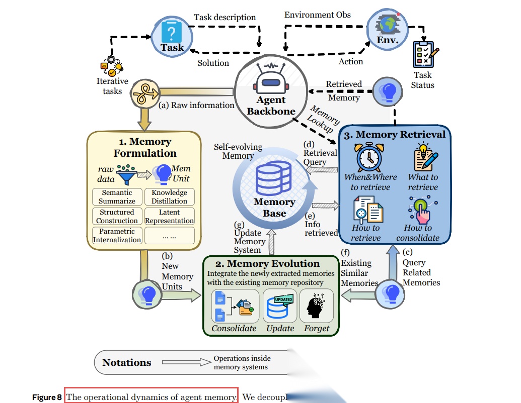 - Formation F:把原始交互 φ_t 提炼成记忆单元