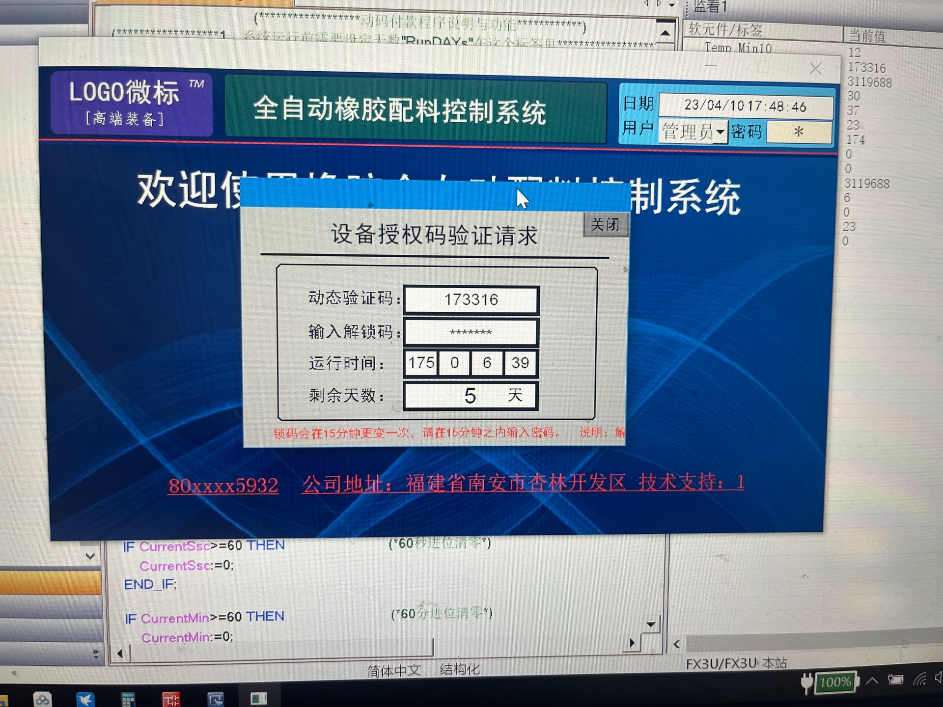 这段代码通过比较授权天数和剩余天数来判断是否接近倒数5天。如果是,就触发HMI报警事件输出付款提醒。同时,实时更新显示在HMI上的倒计时天数。