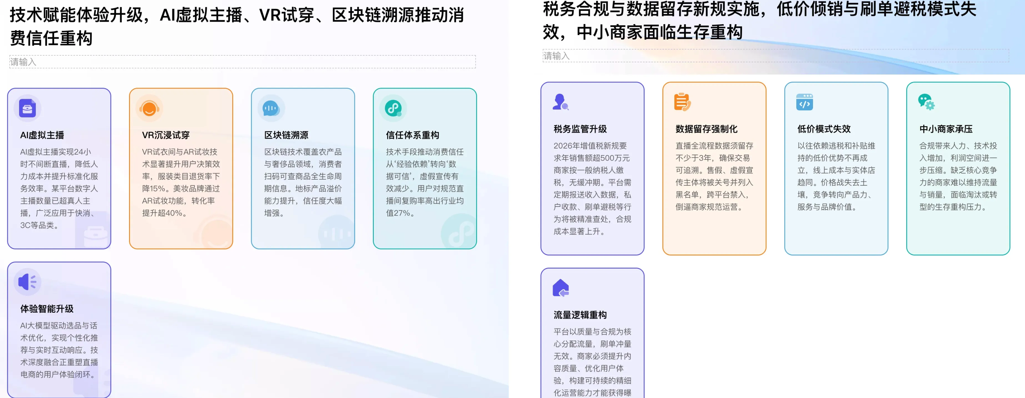 可举例说明新兴赛道(如本地生活、跨境直播、虚拟人直播等)或潜在风险点。