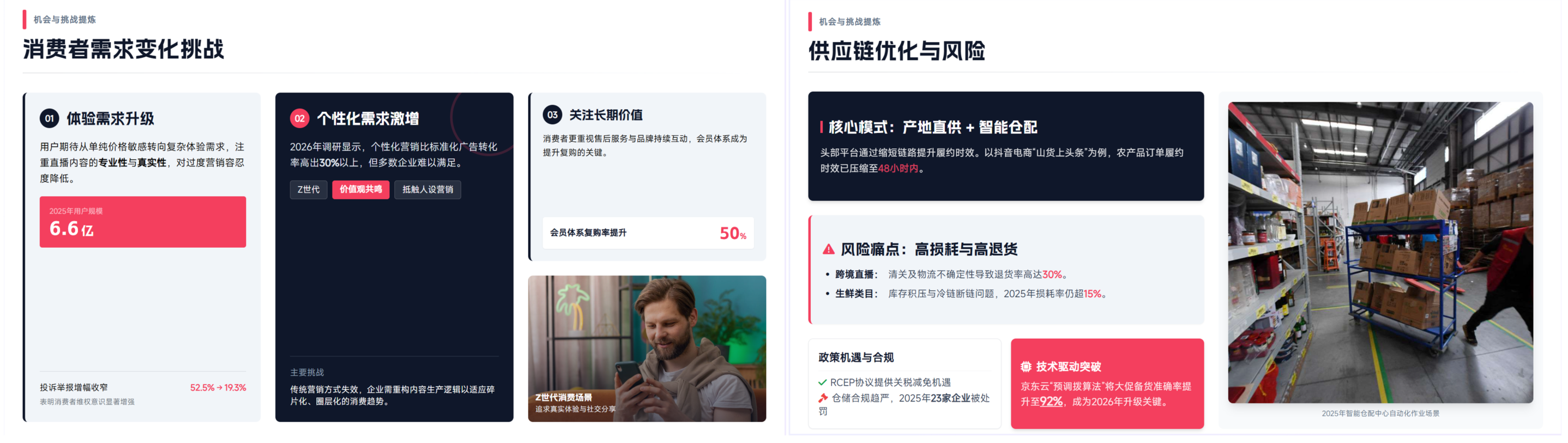 从政策、技术、消费者、供应链等角度,分析当前市场关键机会与挑战。