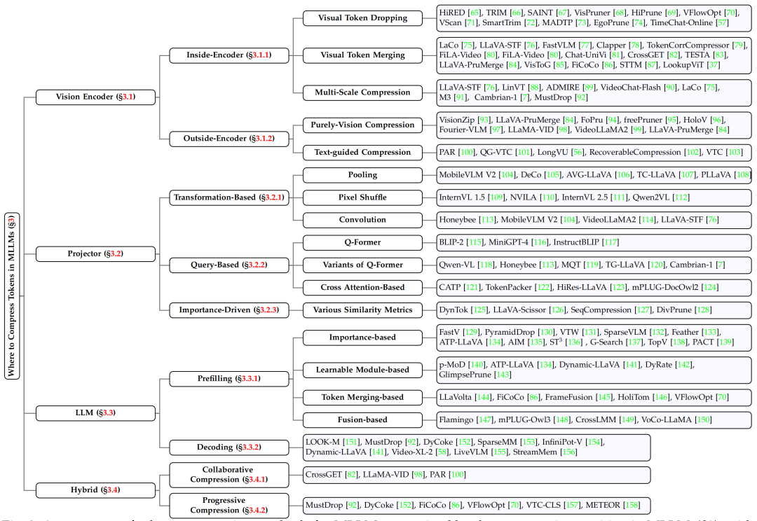 图 2. MLLM Token 压缩方法的系统分类