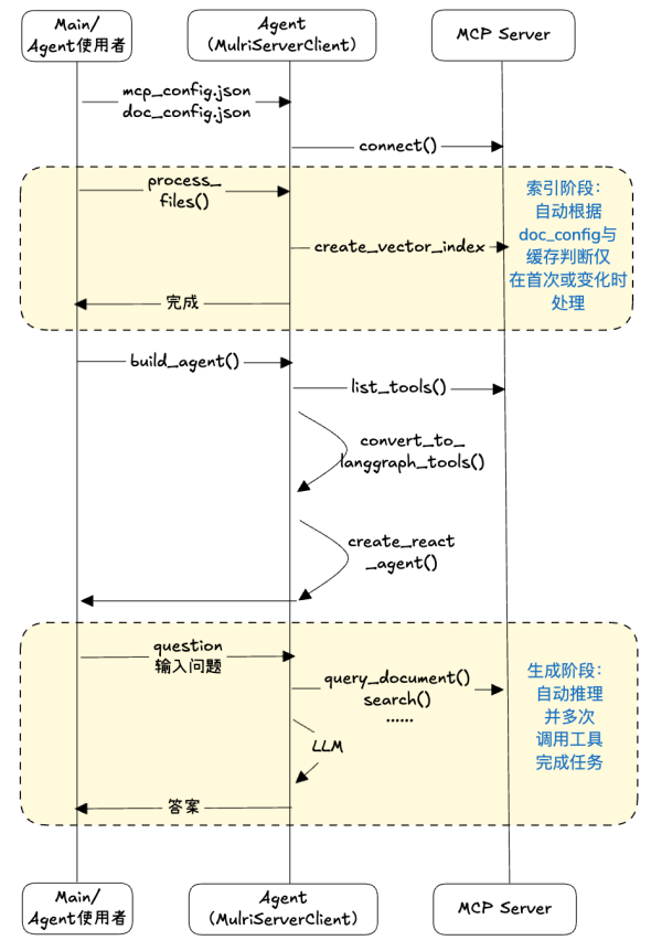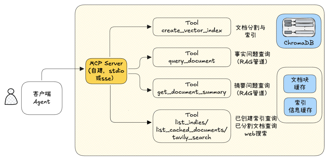 - 在MCP Server上提供RAG管道构建与查询的工具;在客户端创建使用这些工具的AI Agent,提供查询任务规划与执行能力