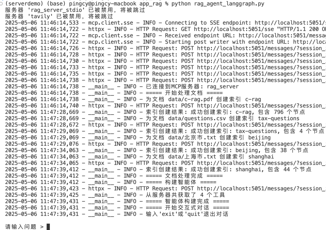 - 最后会加载Server端工具,创建LangGraph的Agent