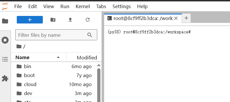 我们点击Terminal进入终端,可以看到当前的python环境为py38,也就是最初的配置页面选择的。