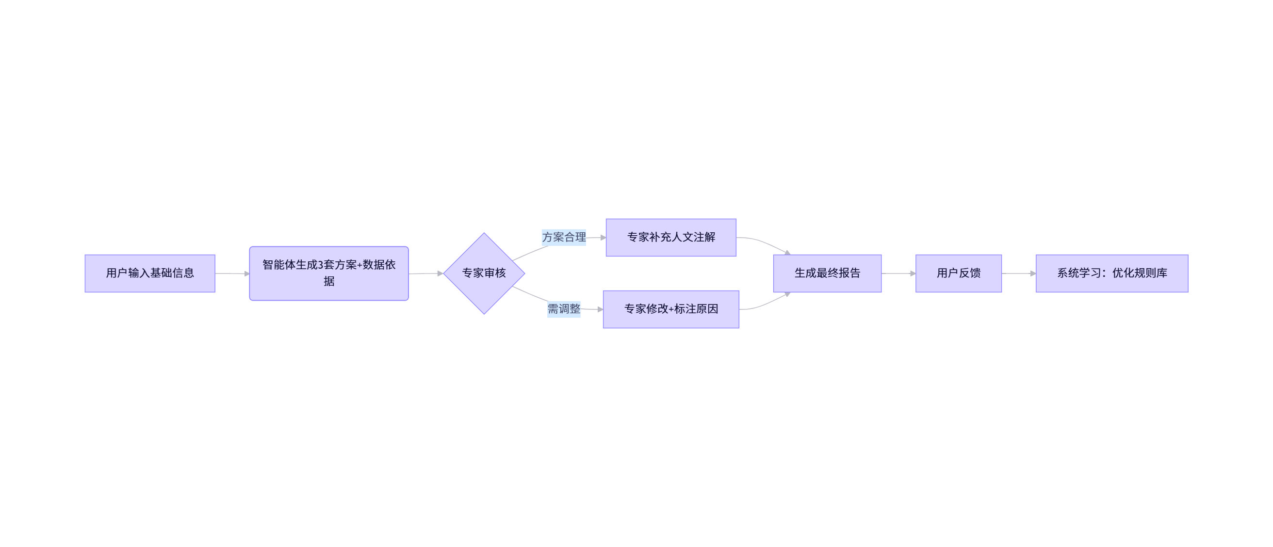 - 生成《协同服务报告》供用户查阅(含智能体建议依据、专家调整理由)