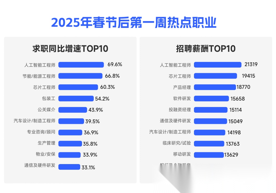猎聘大数据研究院发布的《2025新春开工首周人才供需趋势洞察》显示,今年春招季人工智能岗位呈现出“量价齐升”的趋势。