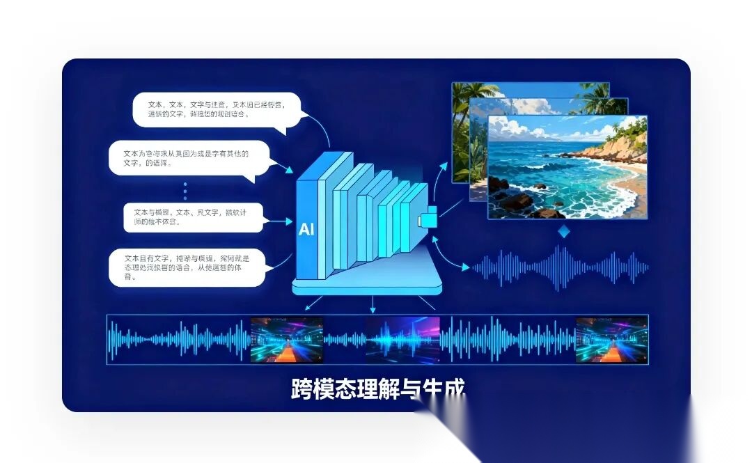多模态就是把文本、图像、语音、视频等多种信息结合起来,比如你用一句话让AI生成一段视频,或者上传一张照片让AI写一段文案,都属于多模态。