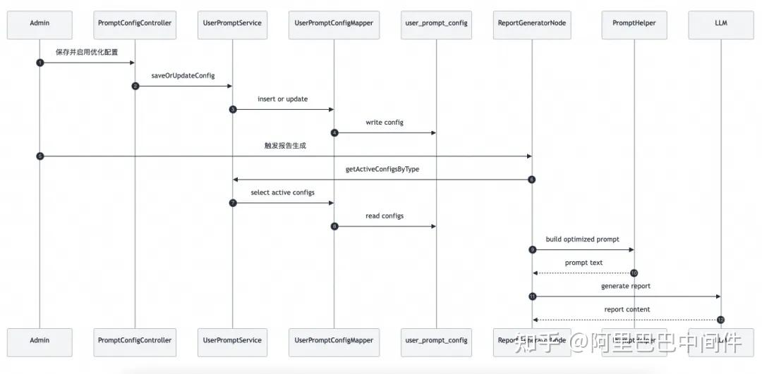 - 自动优化方式:ReportGeneratorNode 拉取启用配置(按 priority 与 display_order 排序),通过 PromptHelper.buildReportGeneratorPromptWithOptimization 拼接“优化要求”。