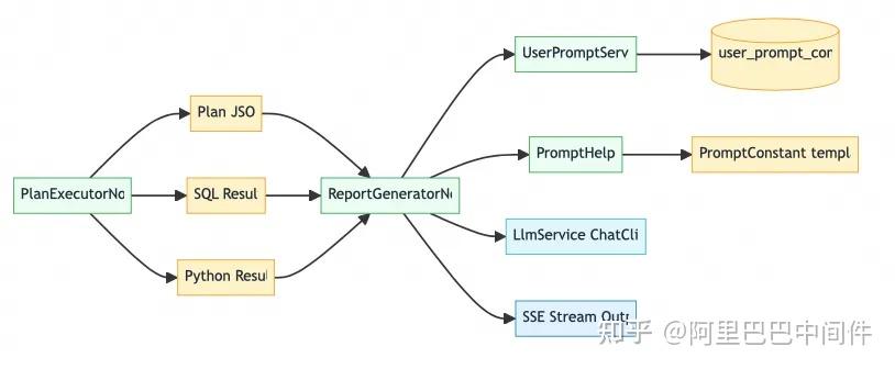 - 报告节点:ReportGeneratorNode 读取计划、SQL/Python 结果与摘要建议(summary_and_recommendations)。