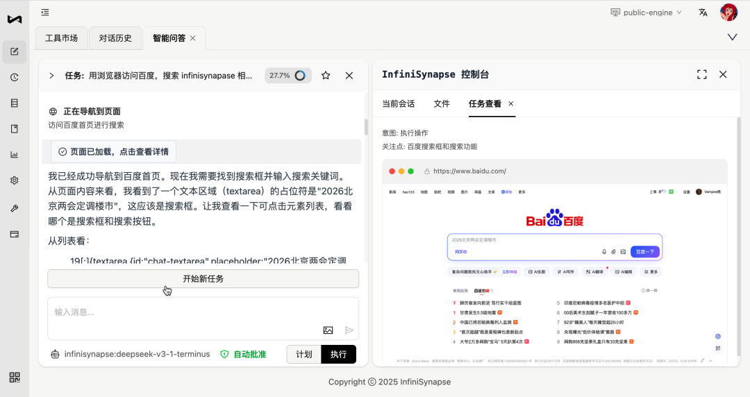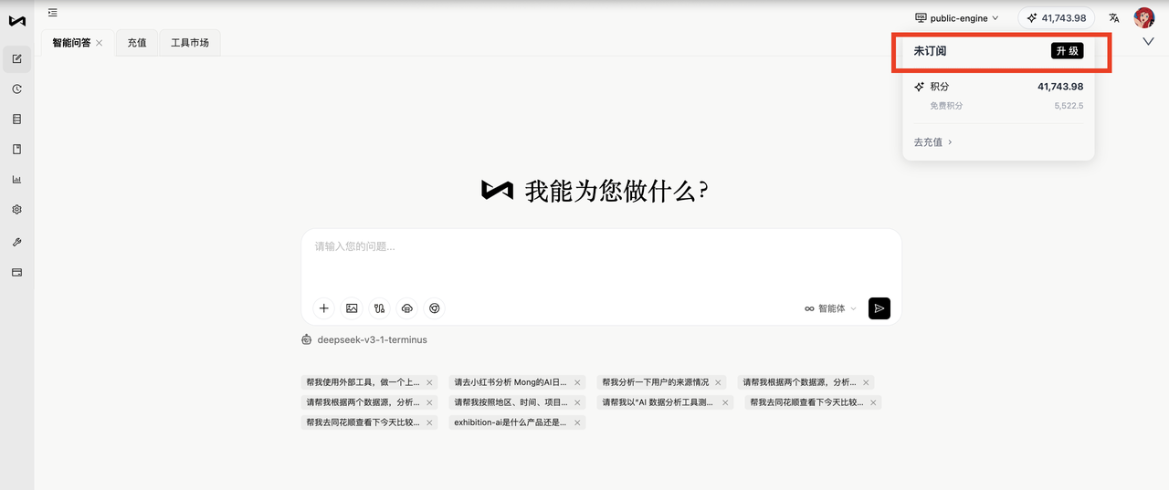 为了快速体验一下这些 Tool ,你可以登陆 InfiniSynapse 网页版 https://app.infinisynapse.cn/tasks,在工具市场也可以看到你获取的所有工具。