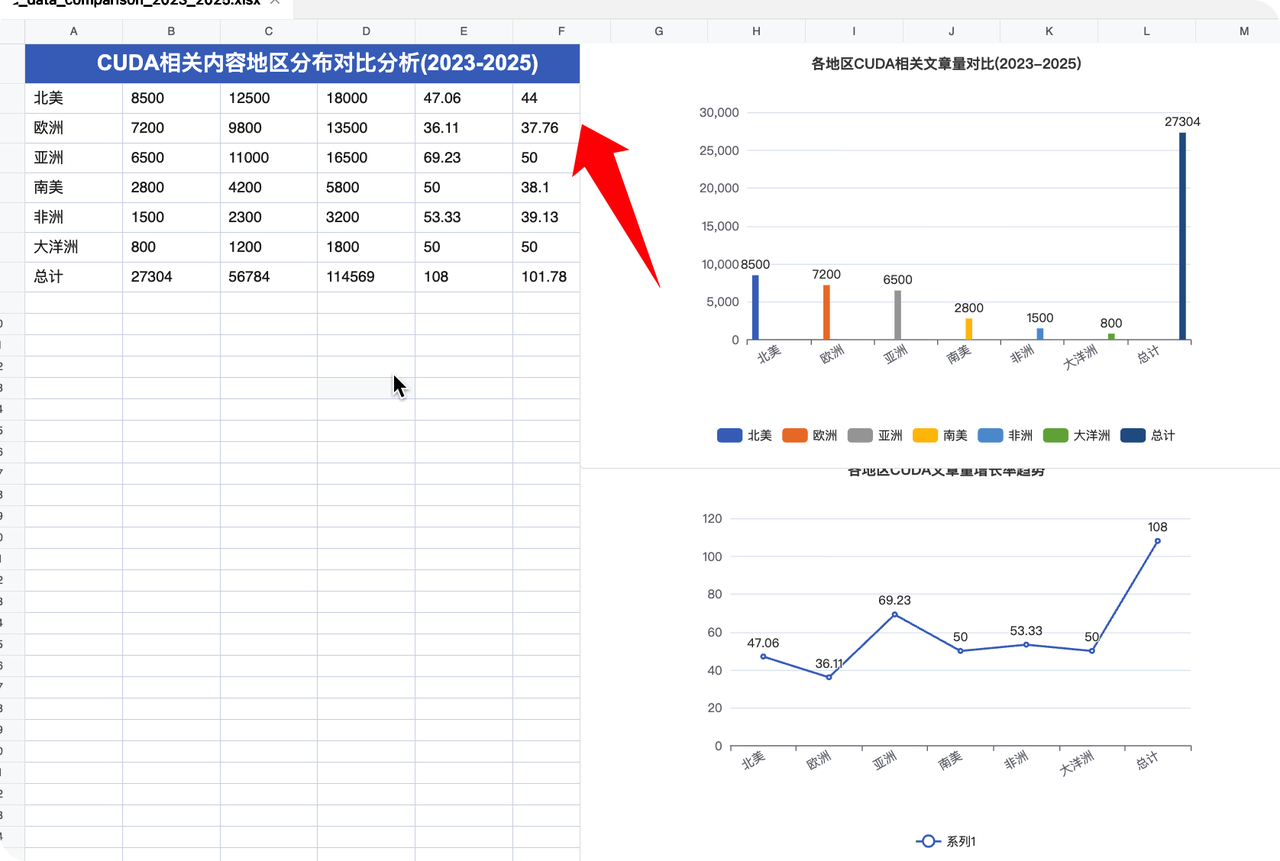 提示词:在sheet年份对比表中,在第一行添加一个醒目的标题,背景色改为蓝色