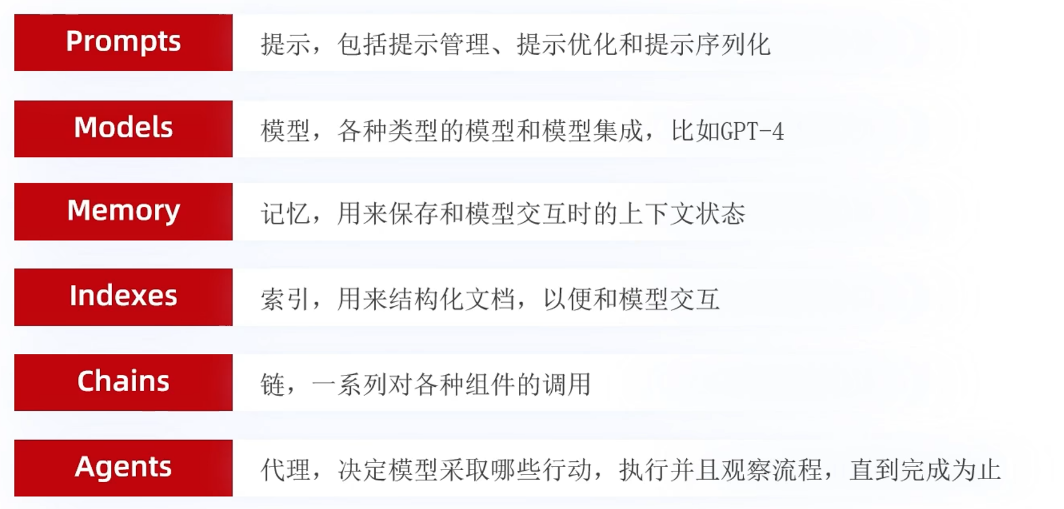 - langchain: 大模型应用开发核心框架,提供链、记忆、检索等功能