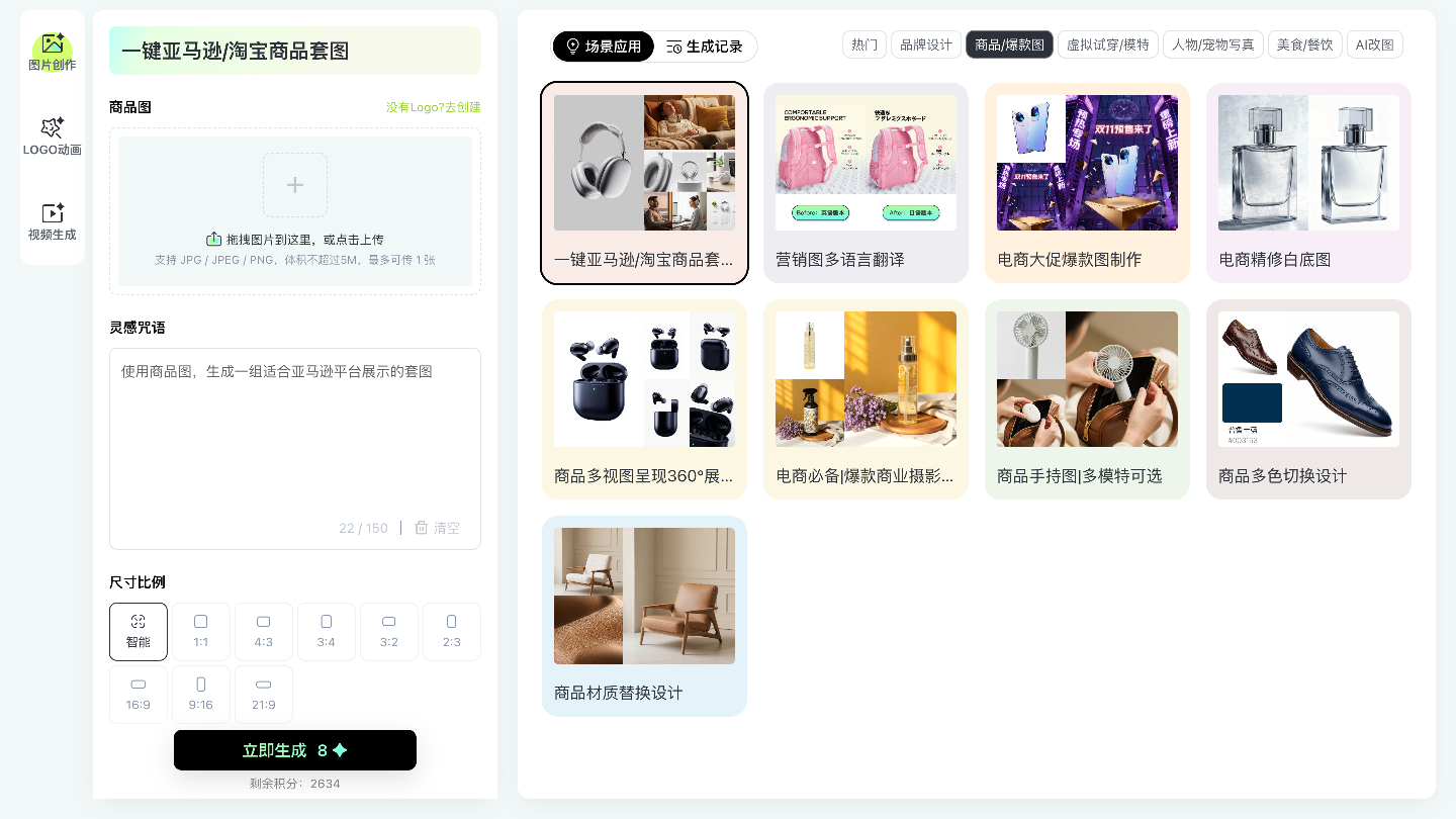 AI工具提供完整商品图解决方案,包括: