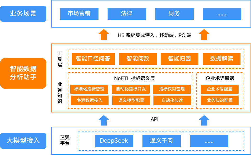 智能数据分析助手由三层架构协同支撑,实现智能交互: