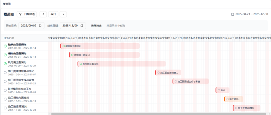 - 11 月 28 日项目中期总结,我写了一段文字复盘收获与不足,比如设计阶段返工率降低 40%、施工阶段协作效率提升的亮点;