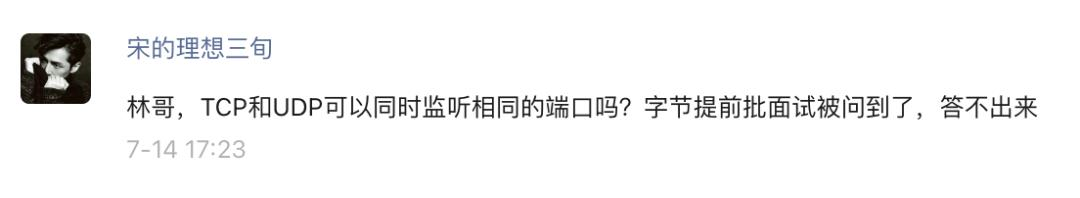 之前有读者在字节面试的时候,被问到:TCP 和 UDP 可以同时监听相同的端口吗?