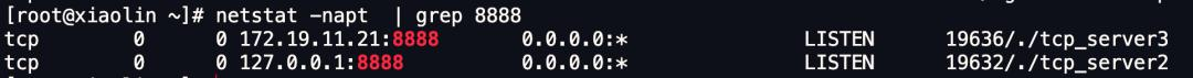 我上面的测试案例是两个 TCP 服务进程同时绑定地址和端口是:0.0.0.0 地址和8888端口,所以才出现的错误。