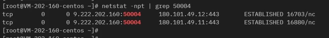 仔细看,上面这两条 TCP 连接的四元组信息中的「目的 IP 地址」是不同的,一个是 180.101.49.12 ,另外一个是 180.101.49.11。