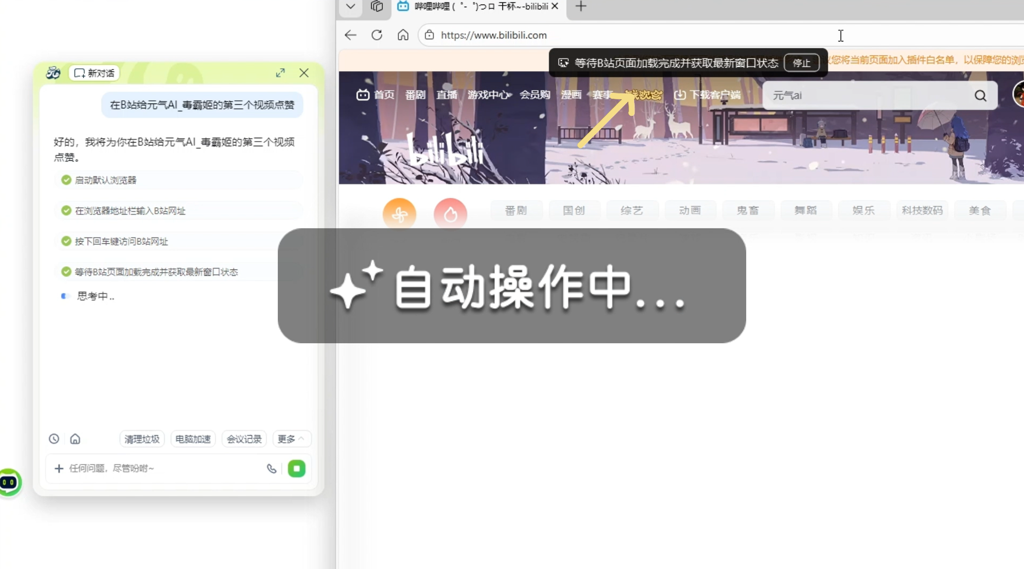 元气AI助手的B站自动点赞功能主要实现以下操作流程: