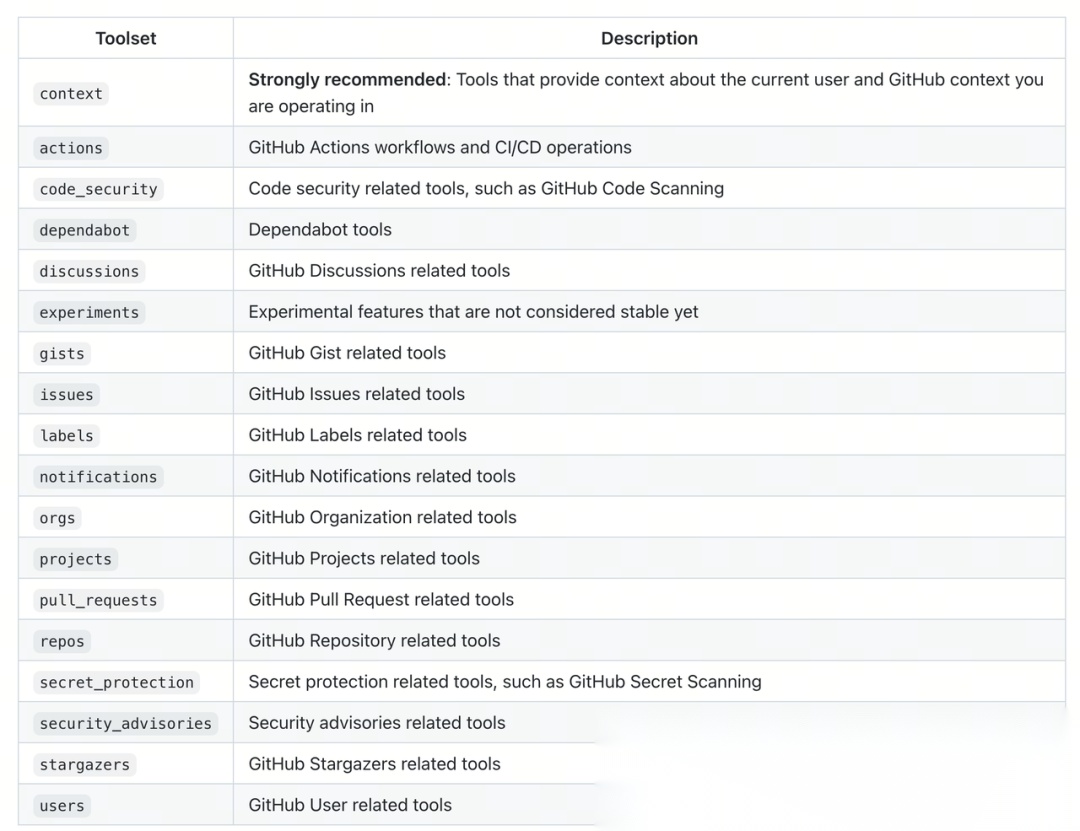 每个 MCP Server 一般都会包含大量的工具,比如 Github MCP ,它自己就包含了 30 多个工具: