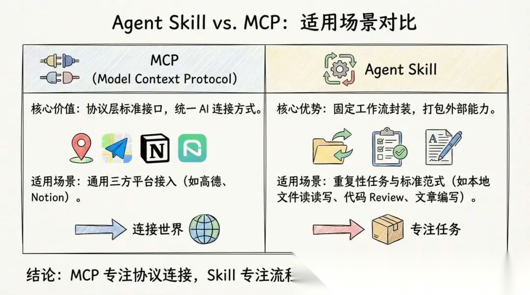 - Skills VS MCP:Skills 和 MCP 的区别是什么,MCP 会被淘汰吗?