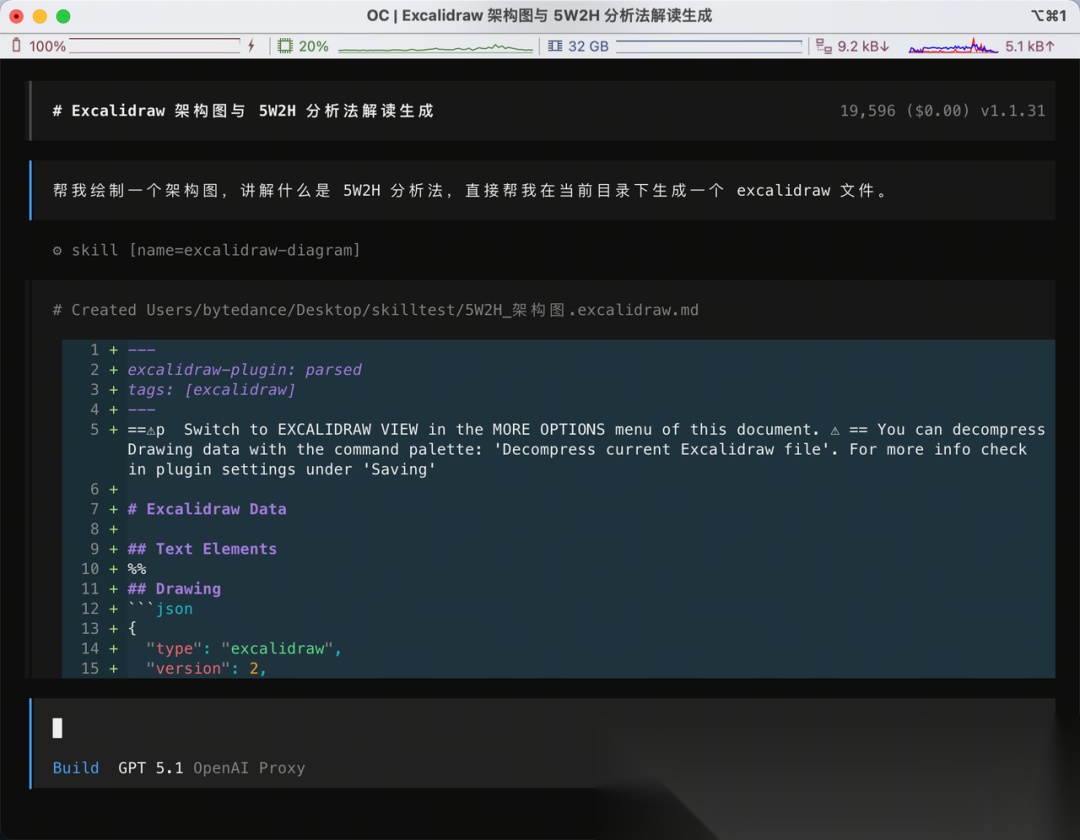 我们将生成的代码粘贴到 https://excalidraw.com/,就可以看到已经生成好的架构图: