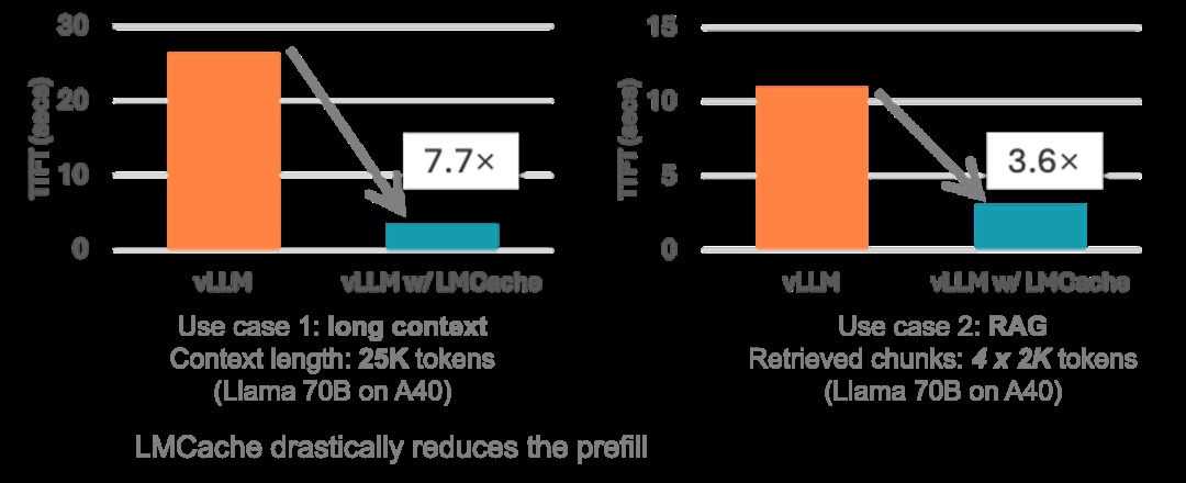 通过与 vLLM 等主流推理引擎结合,LMCache 能够在许多应用场景下带来 3-10 倍的延迟降低和 GPU 计算量节省。它已经被 vLLM Production Stack、KServe 等多个业界知名的开源项目官方支持。