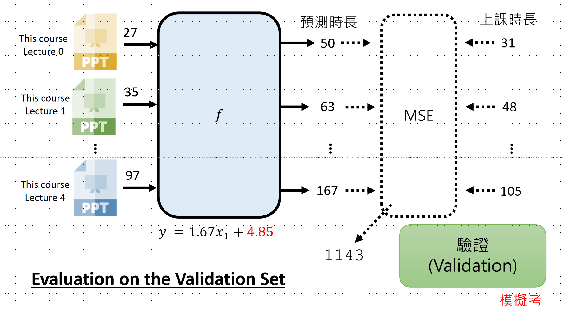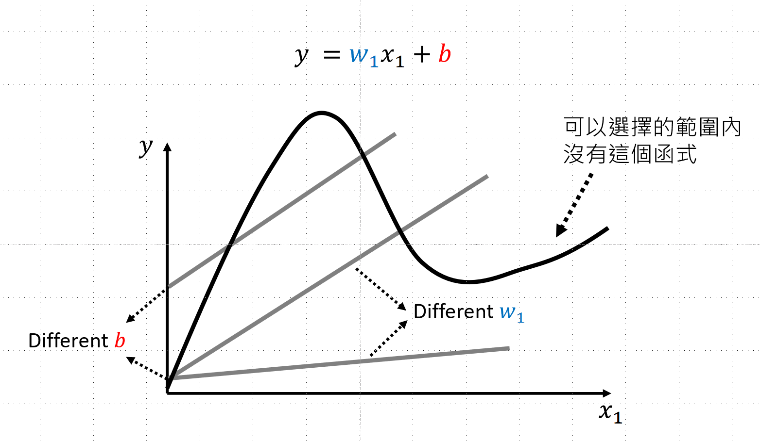 发生了这种现象,我们就需要去调整步骤二,调整函数的划分范围。而且在实际的时候,我们可以在更新参数的时候,也进行验证的步骤,去看看当前训练是否合适。