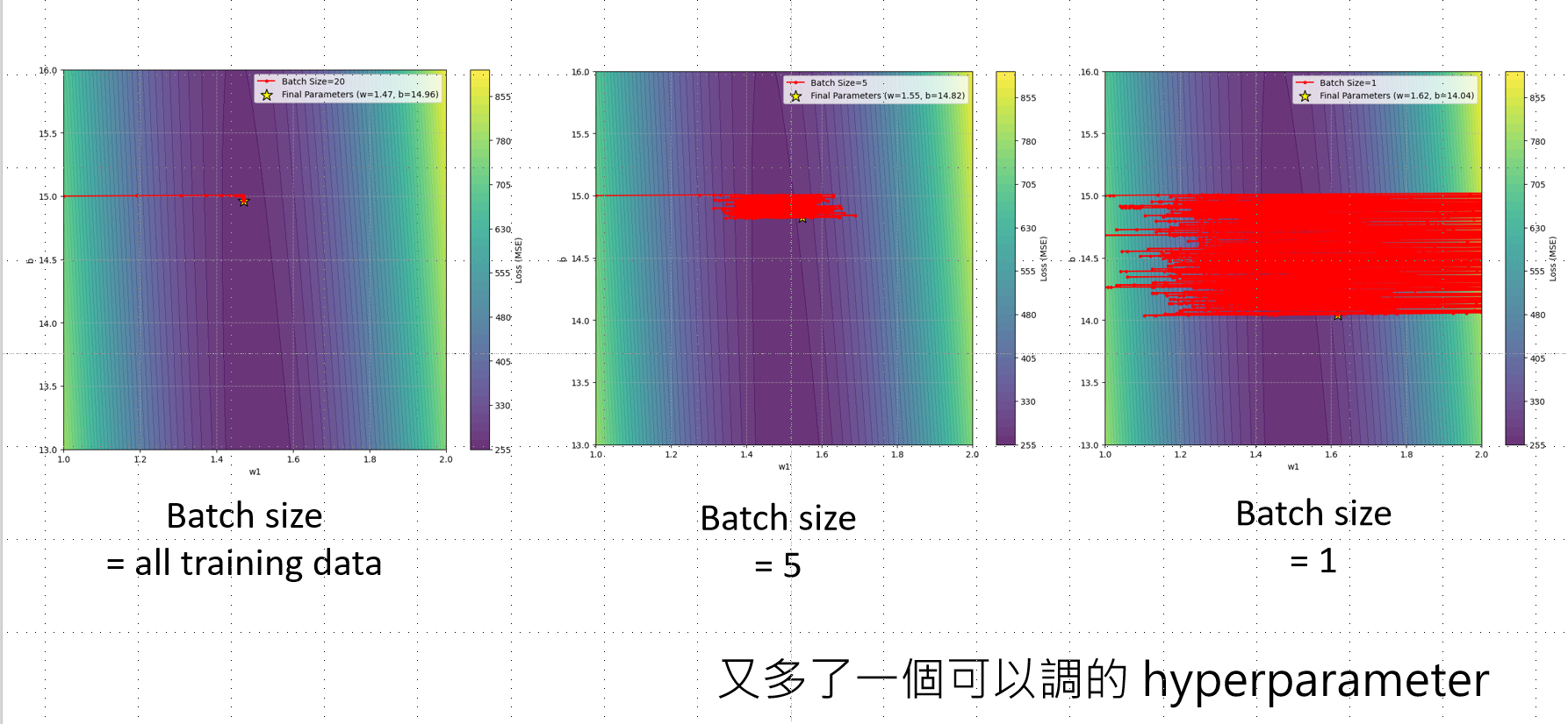 - 一个 Batch 更新一次参数(而非看完所有资料)