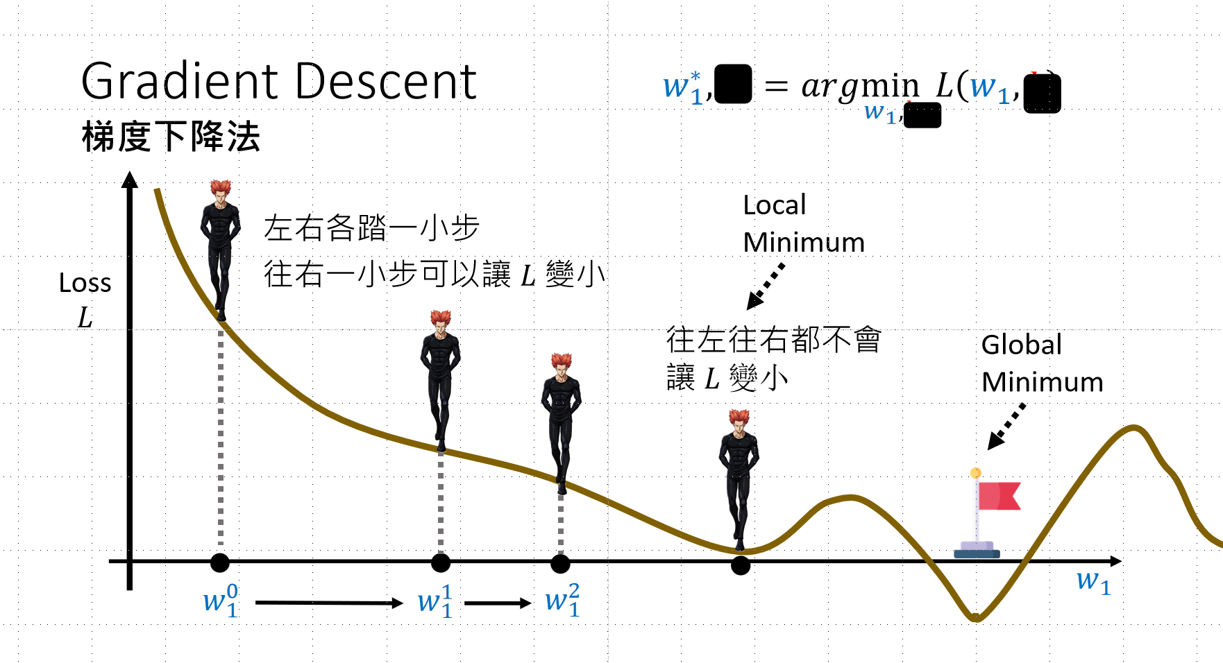 - 局部最优 (Local Minimum):微分为0,但不是全局最低