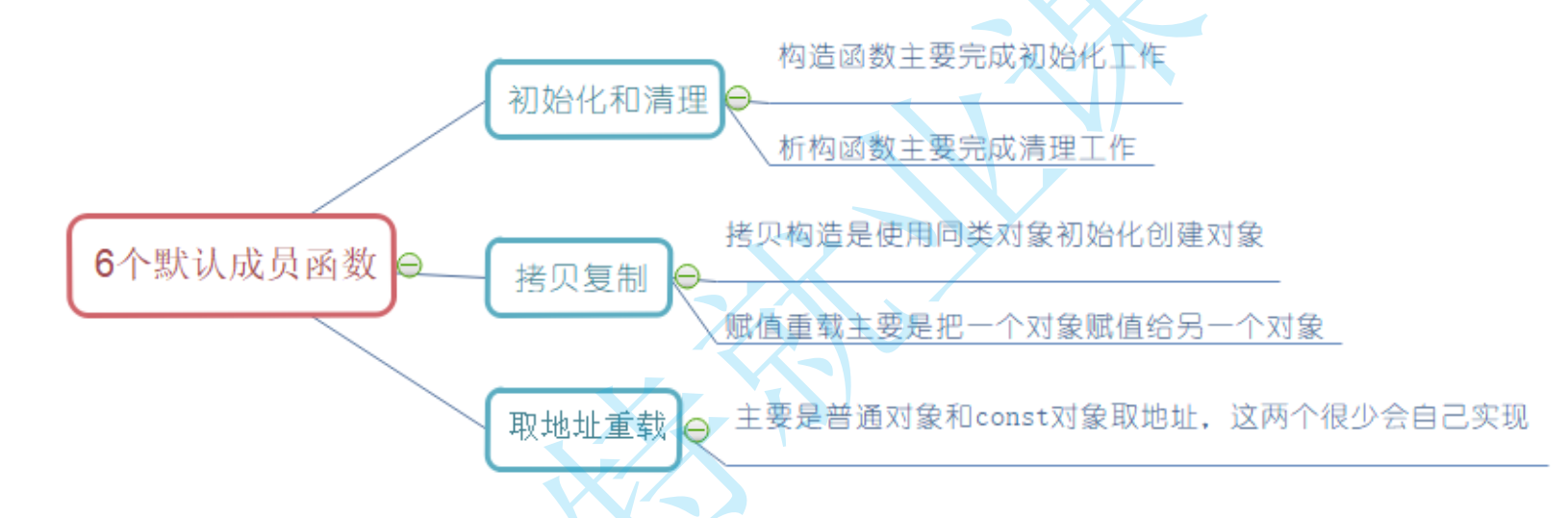 在这6个中最重要的是前4个,最后两个取地址重载不是很重要,我们稍微了解一下即可。其次就是C++11以后还会增加两个默认成员函数:移动构造和移动赋值,这个我们后面再讲解。默认成员函数很重要,也很复杂,我们要从两个方面去学习: