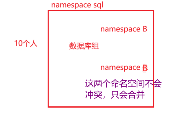 5、项目工程中多文件中定义的同名namespace会认为是⼀个namespace,不会冲突。