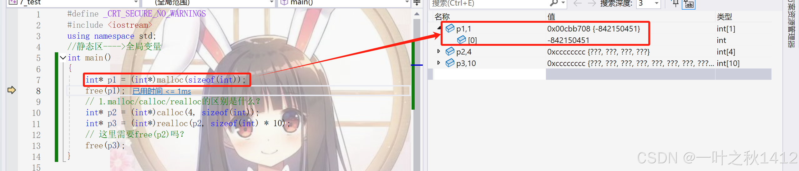 2: staticVar与 localVar分别存储在哪里:staticVar是static关键字修饰的局部变量,当局部变量被static关键字修饰后,此时。在C语言的动态内存管理那一章节,我们简单地讲解了C/C++的内存分布,那么在讲解C/C++的内存分布之前,我们来看下面的一段代码与相关问题.:num1为数组名,数组名代表的是首元素的地址,代表的是数组,并且num1是在main函数中定义的,那