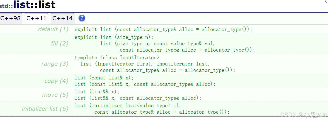 - 这时只要我们的容器支持一个std::initializer_list的构造函数,就可以支持多个值的{x1,x2,x3......}的初始化。STL中的 容器支持多个值构成的{x1,x2,x3,......}的初始化,就是通过底层支持std::initiaalizer_list的构造实现的。如下图list和vector的构造函数中都增添了支持std::initializer_list的构造函数。