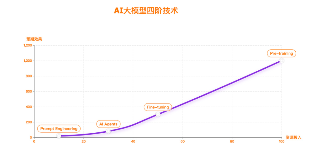 AI 大模型四阶技术-资源投入和预期效果的大致趋势图: