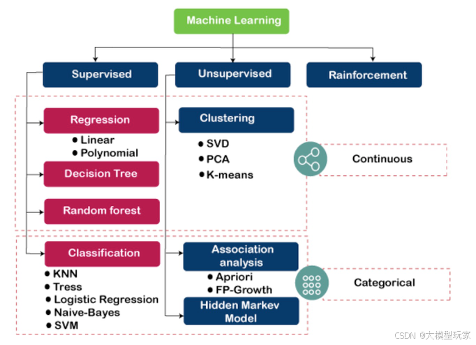 | 深度学习 | 2013年 ~ 2018年 | ImageNet,ResNet,Word2vec,Attention,Transformer | 十亿级标注数据 | 深度神经网络 + 开发框架(TensorFlow,PyTorch) |