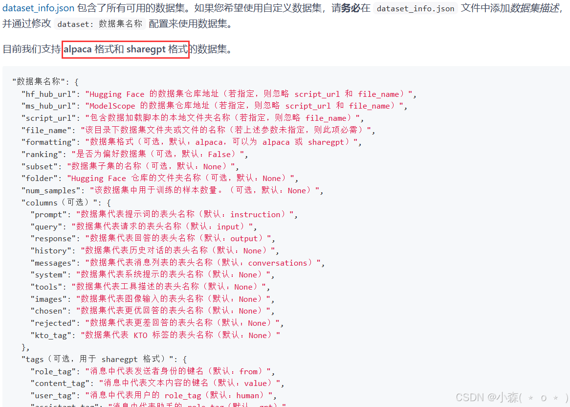 💫对于上述格式的数据,dataset_info.json 中的_数据集描述_应为:
